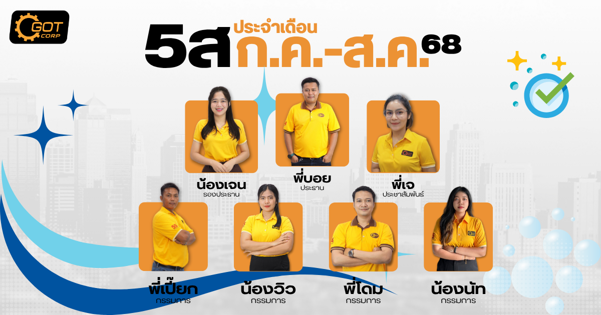 กิจกรรม 5ส ประจำเดือน ก.ค.-ส.ค. 2568 ทีมงาน 5ส คนรุ่นใหม่ พร้อมขับเคลื่อนองค์กรให้น่าอยู่ยิ่งขึ้น!