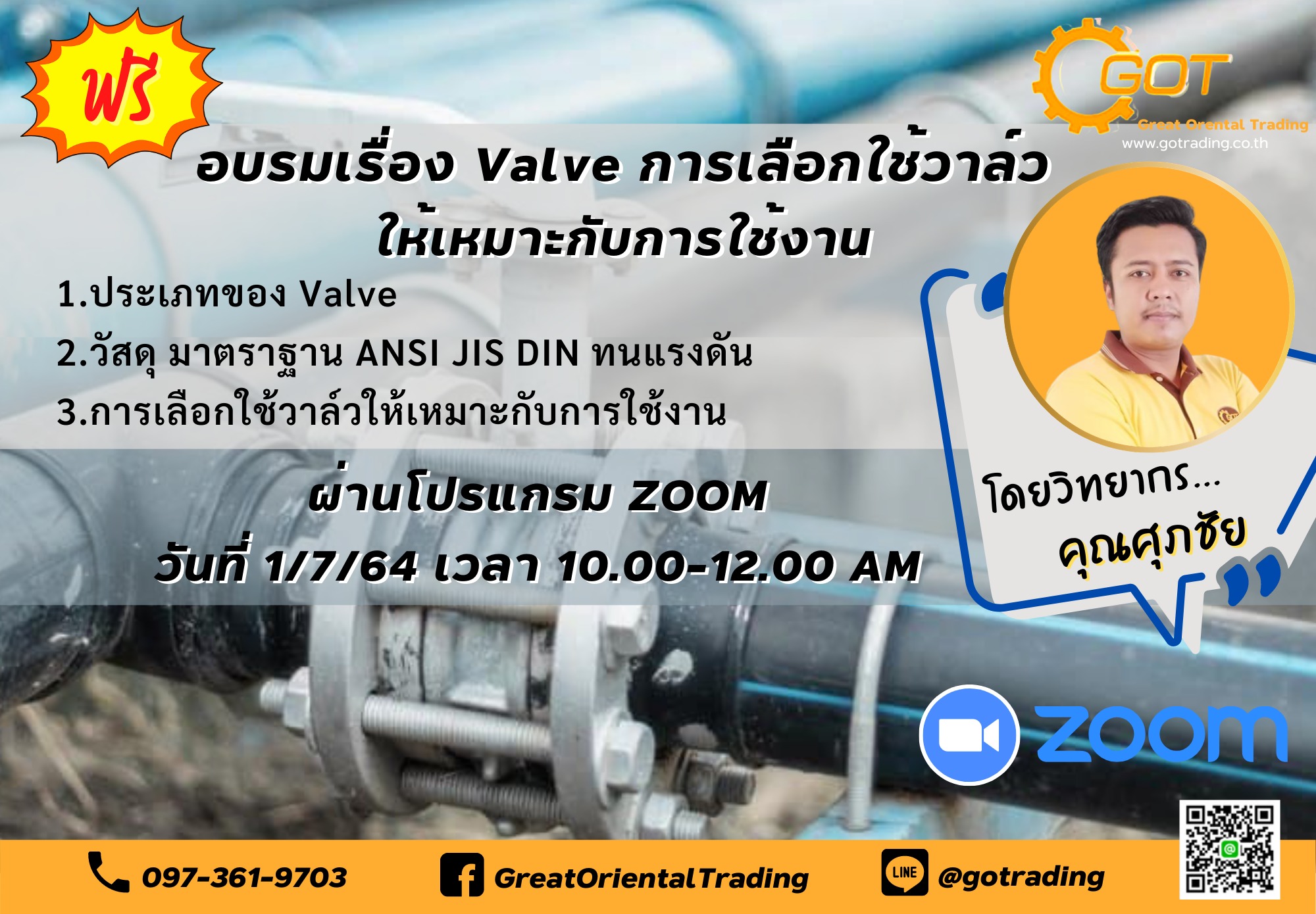 ข้อมูลการอบรมเรื่อง Valve การเลือกใช้วาล์วให้เหมาะกับการใช้งาน By GOT วันที่ 01.07.2021