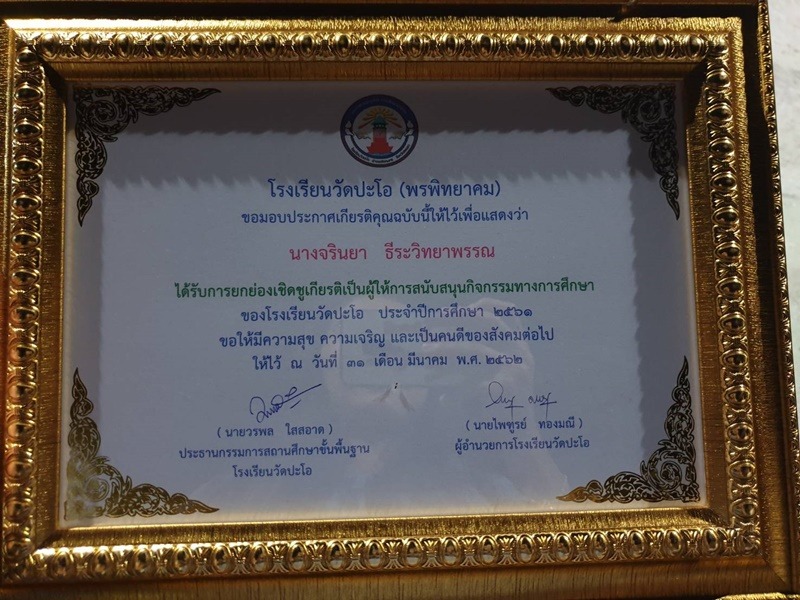 หนึ่งในกิจกรรมเพื่อสังคม ที่เราทำมาตลอด ครั้งนี้ก็เป็นอีกครั้งหนึ่ง ที่ทางบริษัทเกรทโอเรียนเต็ลเทรดดิ้งจำกัด นำด้วย นางจรินยา ธีระวิทยาพรรณ และ นายอรรถวิทย์ ธีระวิทยาพรรณ ได้ส่งมอบทุนการศึกษาให้กับนักเรียน โรงเรียนวัดปะโอ เพื่อเป็นขวัญและกำลังใจให้กับน้องๆ ในด้านการศึกษาต่อไป