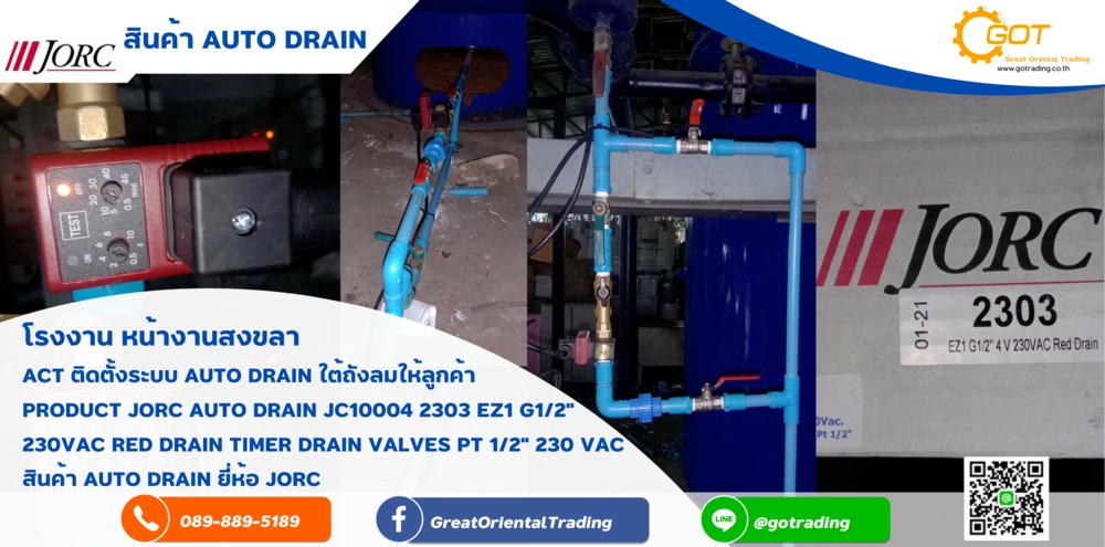 Act.ติดตั้งระบบ Auto Drain ใต้ถังลมให้ลูกค้าProduct Jorc Auto Drain JC10004 2303 EZ1 G1/2" 2230VAC Red Drain Timer Valves Pt 1/2" 230 VAClbo8hk Auto Drain ยี่ห้อ Jorc