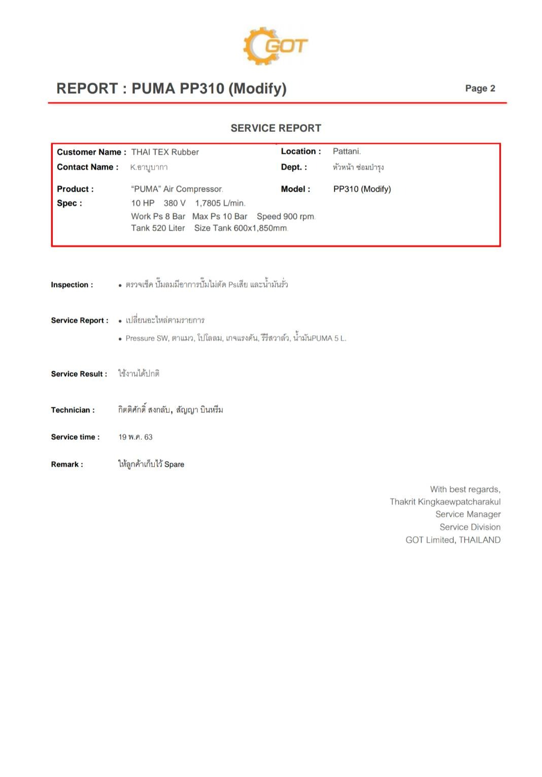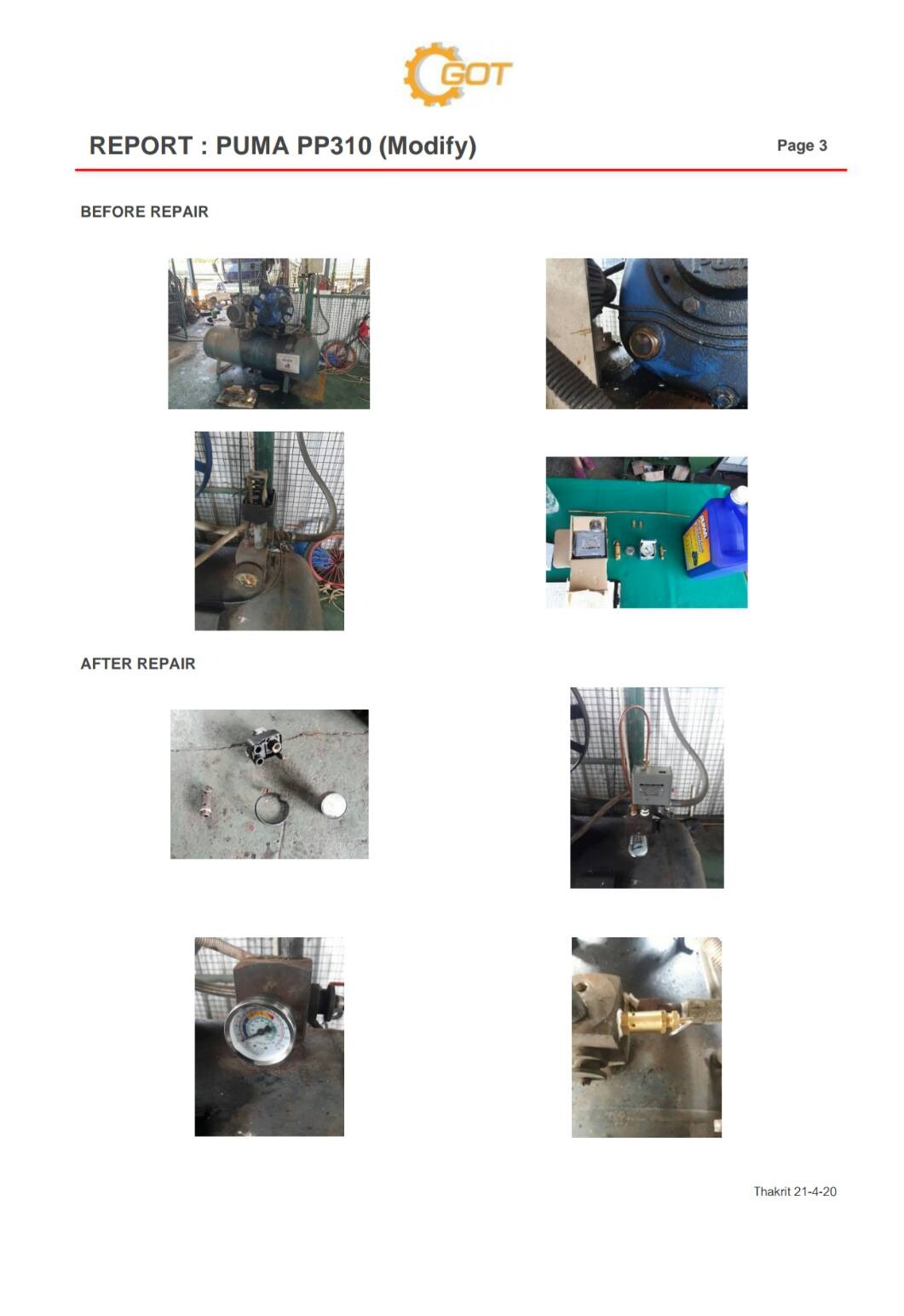 #Maintenance Solution : Report งานซ่อมปั๊มลม PUMA PP310